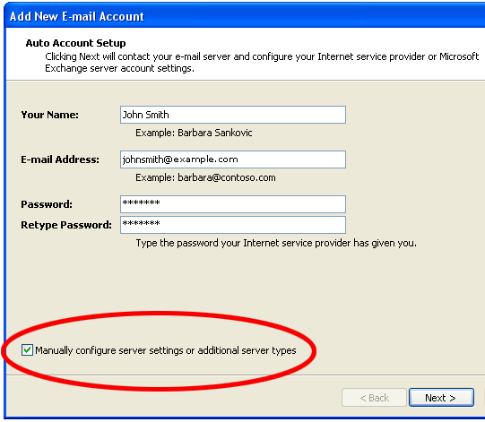 Step 5: Tick the box that states ‘Manually configure server settings or additional server types.