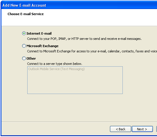 Step 6: Make sure the radial ‘Internet Email’ is selected and click next.