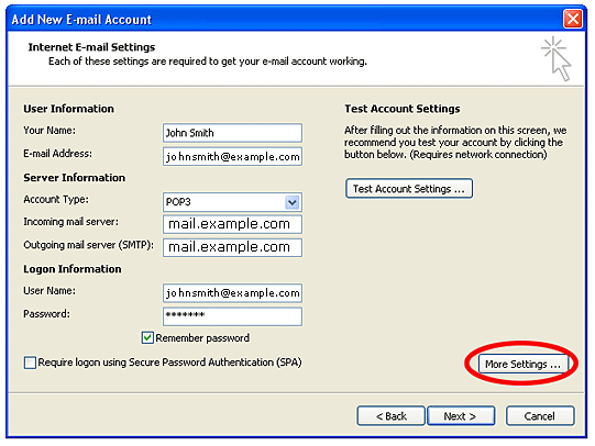 E-mail Address: The E-mail address you are sending email from, johnsmith@example.com